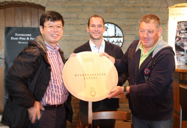 結(jié)束了在羅宏酒莊的考察后,一行人來到當?shù)刈畲蟮南鹉就肮S,Barrel Maker Damy Billon,參觀了橡木桶制作流程,并深入了解了橡木桶在葡萄酒生產(chǎn)過程中起到的重要作用。為表示對中國客人的歡迎,工廠專門制作了紀念品贈送給大家。