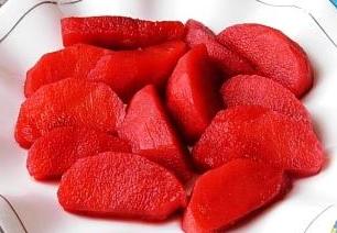 紅酒雪梨是西餐中一道有名的甜品,既可以滋陰潤肺、去痰止咳,又有促進(jìn)血液循環(huán)、美容養(yǎng)顏的功效。這道美食具有清火、去燥、安神、補(bǔ)血等功效,是一款不錯的甜品。原料:紅酒700ml、水晶梨一個、冰糖適量、肉桂粉少許或桂皮一塊、檸檬半個做法:1、水晶梨去皮去核對半切開,放入泡有檸檬的清水中防止變色;2、紅酒倒入鍋中,放入冰糖、肉桂粉,煮至冰糖溶化;3、放入水晶梨,中小火煮至紅酒翻滾,小火繼續(xù)煮一個小時;4、放入冰箱中冷藏幾個小時再食用口感更佳。