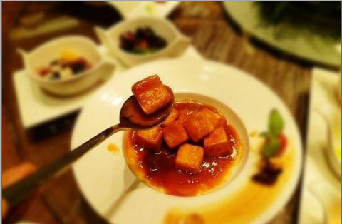 豆腐高蛋白、低脂肪、降血壓、降血脂,是一道養(yǎng)生、益年延壽的美食佳品。紅酒釀豆腐不僅營養(yǎng)豐富,更別有一番風(fēng)味。原料:豆腐、豬肉、香菇、蝦仁、青豆、紅酒做法:1、豆腐切成塊,放到水里煮一下;2、將豬肉剁成肉末,香菇焯好后剁碎,和肉末一起攪成肉餡,加入適量的鹽和雞精;3、煮好的豆腐擺在盤里;然后用小勺給豆腐挖洞。放進(jìn)肉餡,再在上面放一個蝦仁;4、將準(zhǔn)備好的豆腐放入蒸鍋內(nèi)蒸10分鐘左右,拿出;5、蒸的時候盤里會有一些豆腐湯,把湯倒進(jìn)鍋內(nèi),放入一點(diǎn)青豆,倒入少量紅葡萄酒,加入適量的鹽、雞精和水淀粉勾芡,然后用小勺把勾好的芡澆在釀好的豆腐上即可。