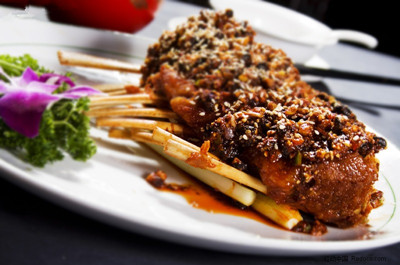 (3)青蘆筍一支煮熟,待涼備用橄欖油熱鍋煎羊肋排,加入紅酒,然後以中火煎3分鐘,烤箱預(yù)熱,將煎五分熟的羊肋排送進(jìn)220°C的烤箱烤15~20分鐘,利用煎羊肋排的油鍋加熱腌醬,以中火收干汁液,使其濃稠,取出羊肋排,將通心粉與清蘆筍置於盤緣并淋上醬汁與辣椒粉即可食用。