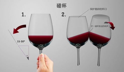 在力多(Riedel)玻璃器皿會了解到,在品嘗葡萄酒時,很多人在相互碰杯時,常會將杯口對著杯口,如圖所示: