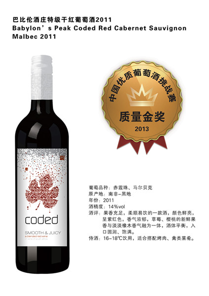 巴比倫特級(jí)干紅榮獲“中國(guó)優(yōu)質(zhì)葡萄酒挑戰(zhàn)賽”質(zhì)量金獎(jiǎng)