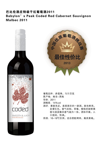 巴比倫特級(jí)干紅榮獲“中國優(yōu)質(zhì)葡萄酒挑戰(zhàn)賽”最佳性價(jià)比