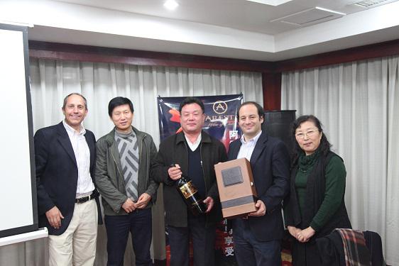 2013年11月11日,阿雷斯帝酒莊首席執(zhí)行官馬蒂亞斯Matias Rivera與阿雷斯帝亞太區(qū)銷售總監(jiān)尼古拉斯Nicolas Abarzua到訪冠威國(guó)際。當(dāng)日,雙方就阿雷斯帝產(chǎn)品在中國(guó)市場(chǎng)的推廣與產(chǎn)品相關(guān)信息進(jìn)行了深入交談。